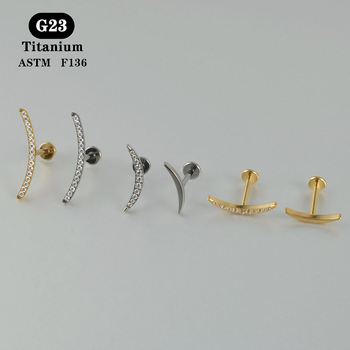 Astm F136 Titanium Halve Maan Zirkoon Labret Vergulde Oorknopjes Lob Tragus Kraakbeen Piercing Sieraden Groothandel