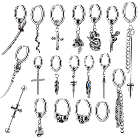 Punk Stijl Rvs Oor Clip Bengelen Oorbellen Groothandel Chirurgisch Staal Oor Piercing Hoepel Kruis Snack Sieraden Voor Mannen Vrouwen